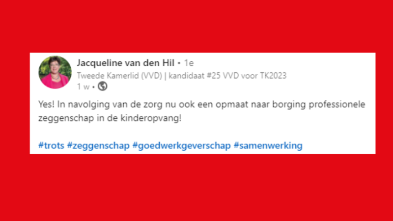 De motie over professionele zeggenschap in de kinderopvang is vandaag aangenomen door de Tweede Kamer der Staten-Generaal.